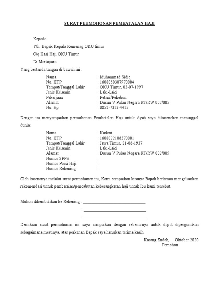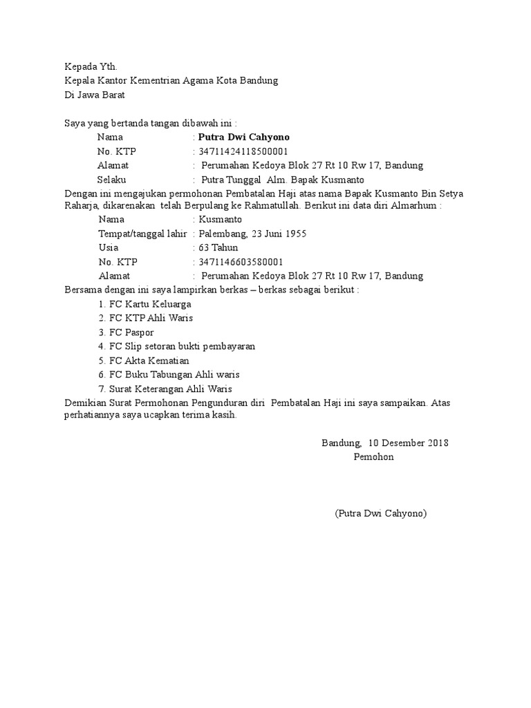 Contoh Surat Pengunduran Diri Pembatalan Haji Karena Otosection